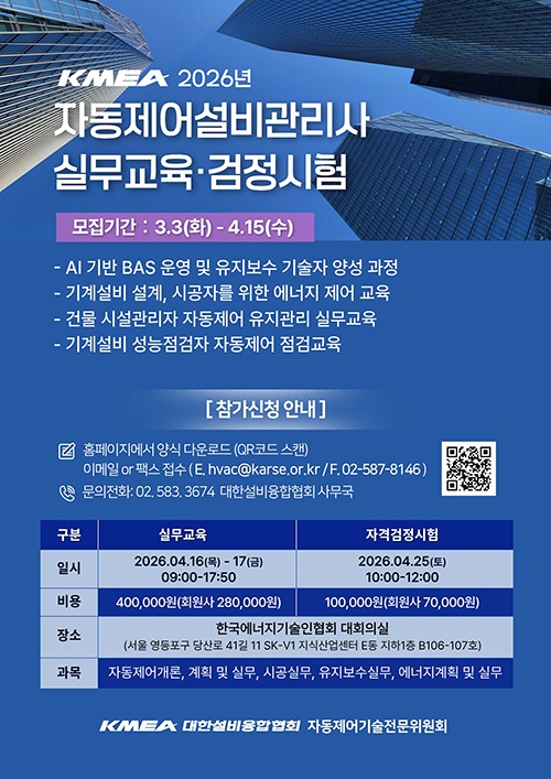 공지2026년도 1차 자동제어설비관리사 실무교육 및 자격검정시험 안내